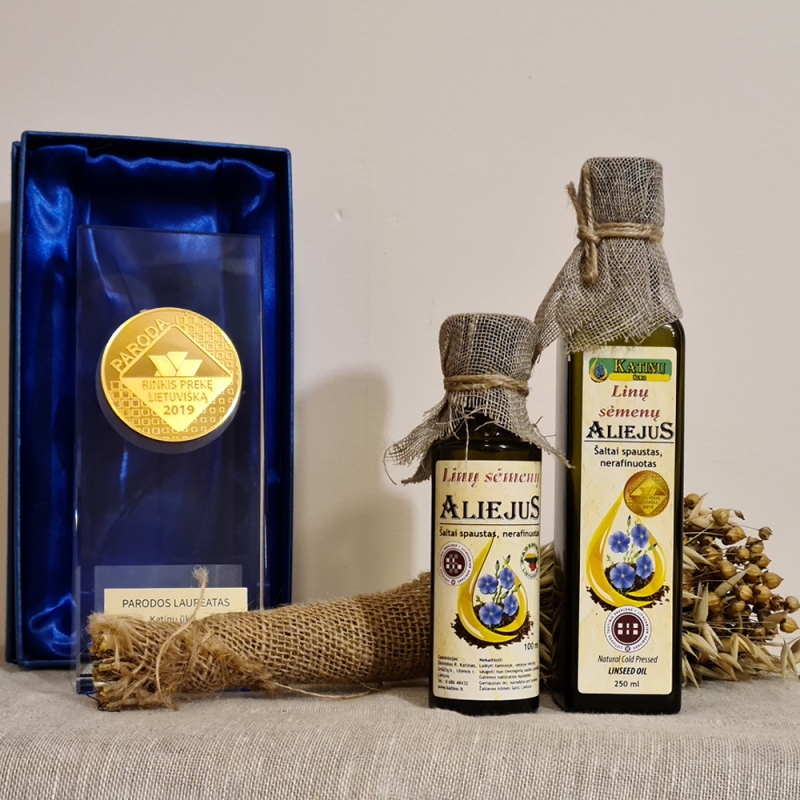 Mūsų ūkyje spaudžiamas linų sėmenų aliejus yra pripažintas Lietuvos tautinio paveldo produktu bei yra apdovanotas aukso medaliu parodoje "Rinkis prekę lietuvišką"2019 !