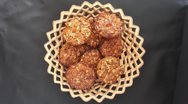 Pagaminimo eiga: Įmušti kiaušinį, įpilti šaukštą agavų sirupo, supilti avižų dribsnius, cinamoną, abrikosų kauliukų miltus bei smulkintus riešutus. Gautą masę supilti į keksiukų formeles. Kepti įkaitintoje orkaitėje 180 laipsnių temperatūroje iki tol, kol sausainiai gražiai apskrus ir šiek tiek paruduos;
