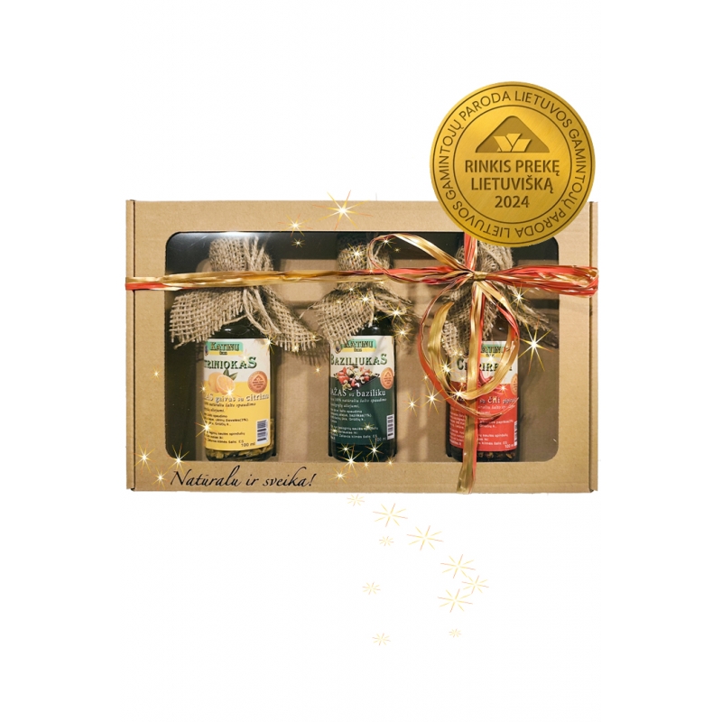 Padažų rinkinys ("Citriniokas", "Čirpirpiri" ir "Baziliukas") Absoliučiai populiariausias! Rankų darbo padažai salotoms, picai ir mėsytei su 100 proc. natūraliu saulėgrąžų branduolių aliejumi, spaustu senoviniu būdu!