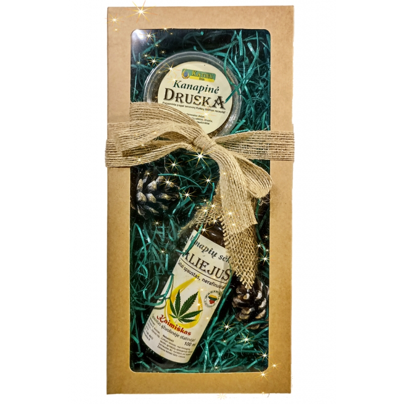 Rinkinį sudaro šalto spaudimo kanapių sėklų aliejus (100ml) ir firminė Katinų ūkio kanapinė druska, gaminama pagal senovinį ūkio receptą! Aliejų spaudžiame senoviniu būdu, todėl jo skonis ypatingai švelnus ir įsimintinas, o senovinio recepto kanapinė druska tikrai pagardins bulvių patiekalus ar daržoves!
