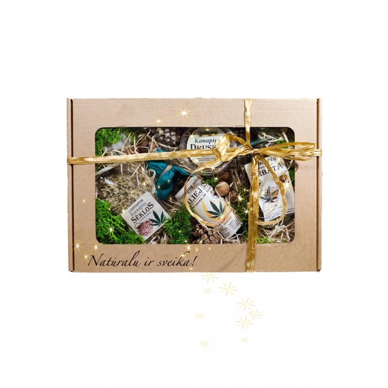 Rinkinį sudaro ąžuolo bačkutėje senoviniu būdu spaustas kanapių sėklų aliejus, riešutų skonio lukštentos kanapių sėklos, firminė Katinų ūkio kanapinė, kanapių arbata. Aliejų spaudžiame unikaliu senoviniu būdu be sąlyčio su metalais, todėl jo skonis yra ypatingai natūralus, išraiškingas ir gurmaniškas. Produktai pagaminti iš kokybiškų žaliavų.