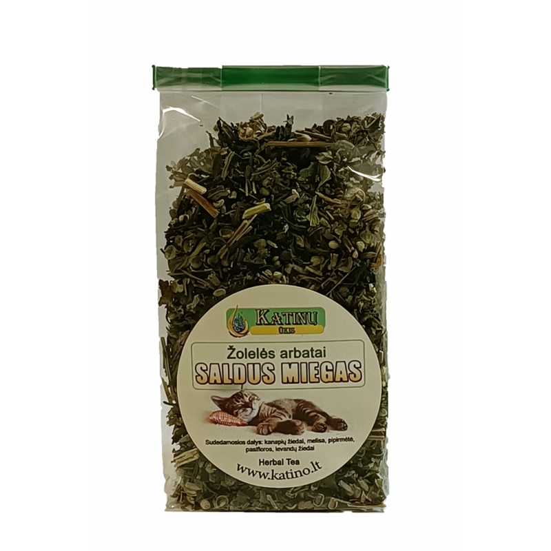 Sudedamosios dalys: kanapių žiedai, pipirmėtė, melisa, pasifloros, levandų žiedai.