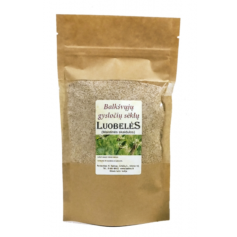 Arba tiesiog arbatinį šaukštelį užpilkite stikline vandens ir išgerkite. Vartojant balkšvojo gysločio sėklų luobeles svarbu gerti daug vandens.