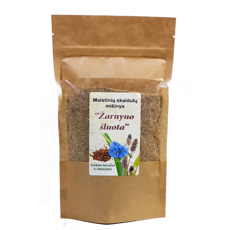 Maistinių skaidulų mišinys "Žarnyno šluota" - visiškai natūralus produktas, kurio sudėtyje esančių linų sėmenų, balkšvųjų gysločių sėklų luobelių savybės gali padėti išvalyti žarnyną bei atsikratyti nereikalingo svorio.